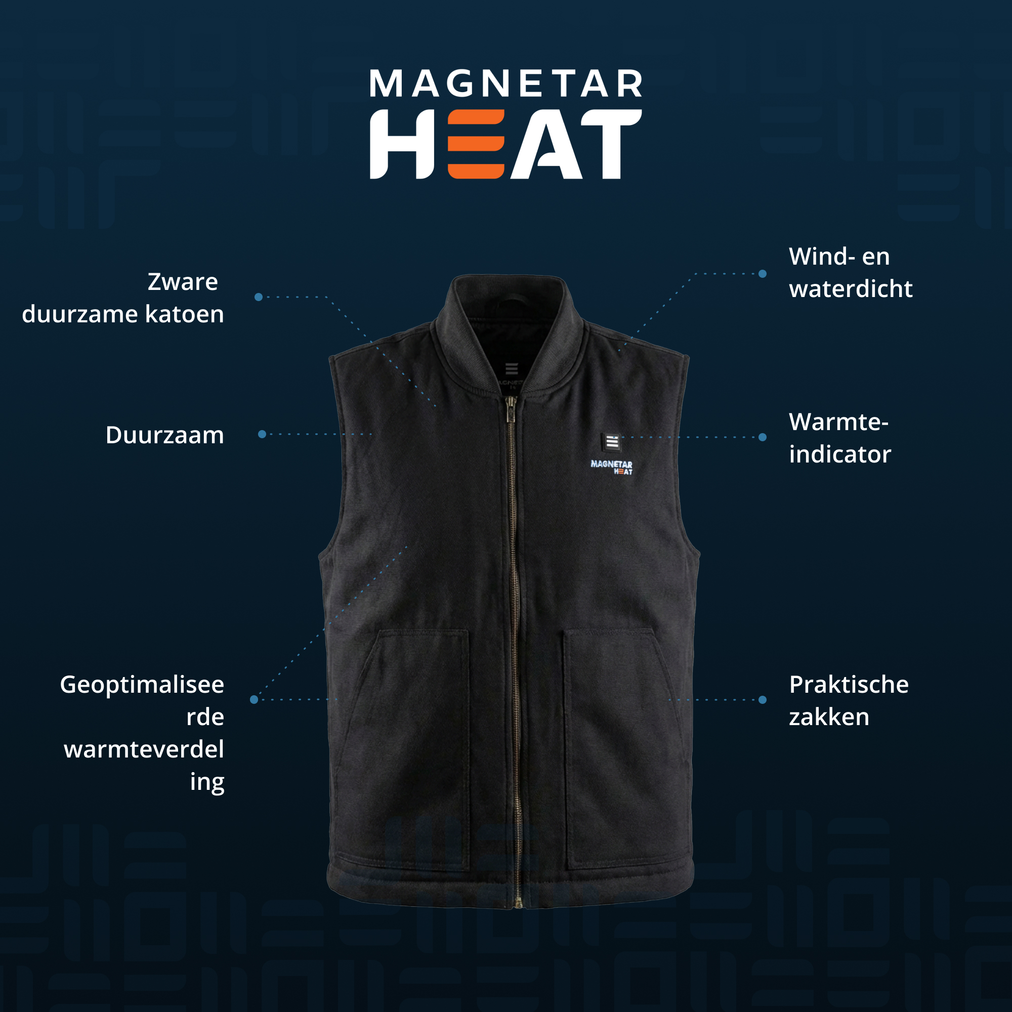 Dit is een verwarmbare werk bodywarmer met verwarming en 3 warmtestanden. Houdt je warm wanneer het moet. Extra slijtvast.